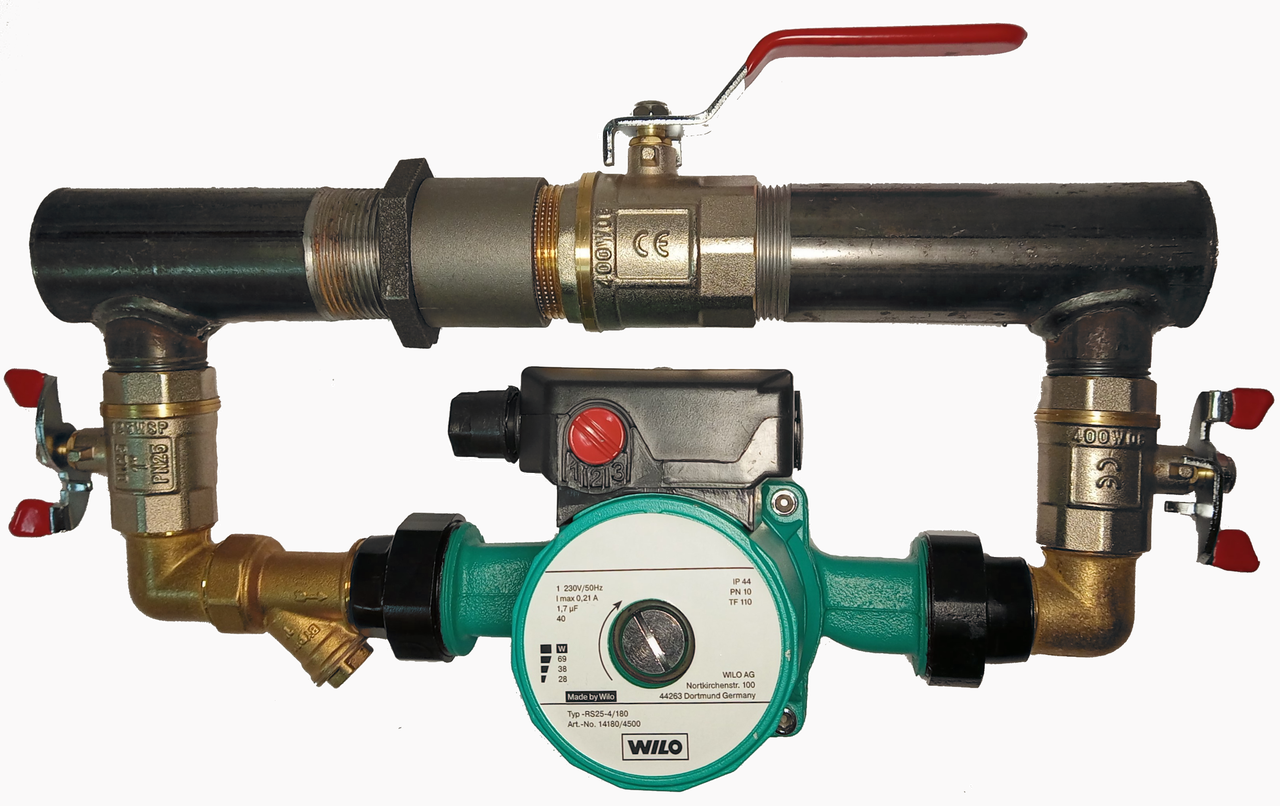 Компактна обвідна лінія діаметром 40 мм, оснащена кульовим краном для ручного керування потоком теплоносія. Завдяки короткій конструкції байпас ідеально підходить для монтажу в умовах обмеженого простору, не втрачаючи при цьому повної функціональності.