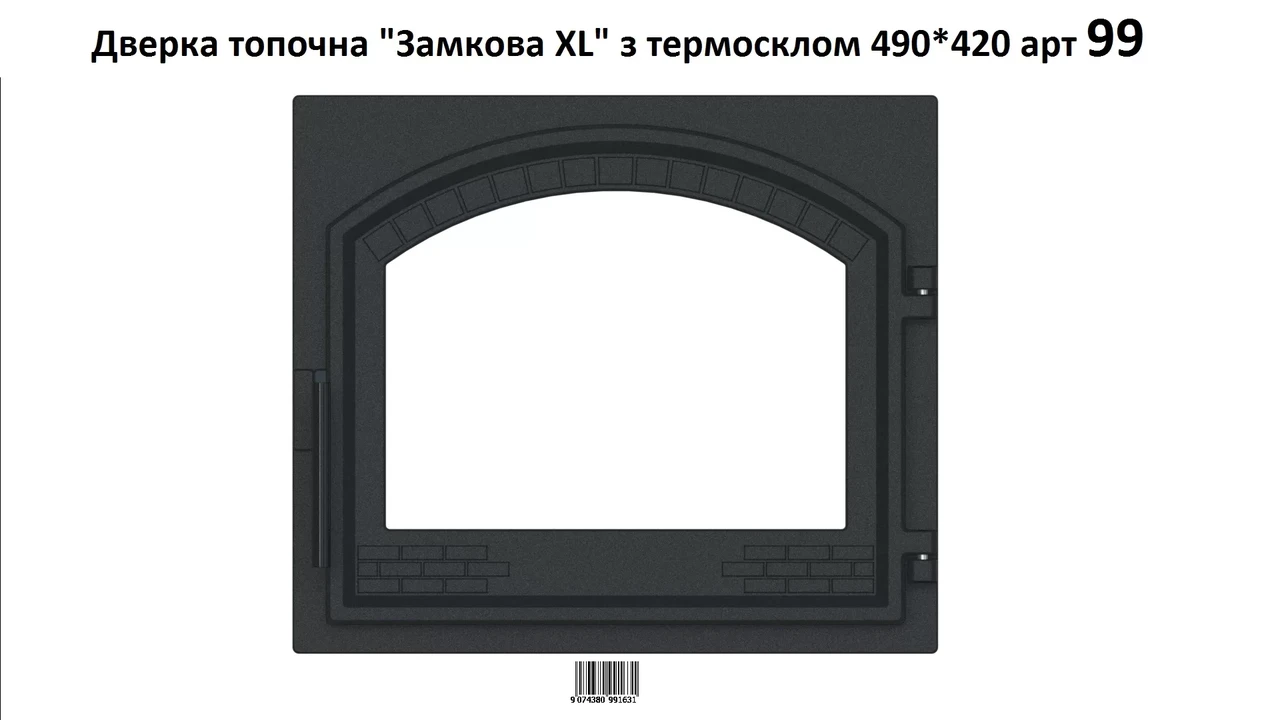 Дверка арочна “Замкова” з термосклом – дверцята з жаростійким склом. Тип: Дверка топочна; Матеріал: Чавун; Розмір: 490×420 мм; Особливість: Термоскло; Дизайн: Замкова