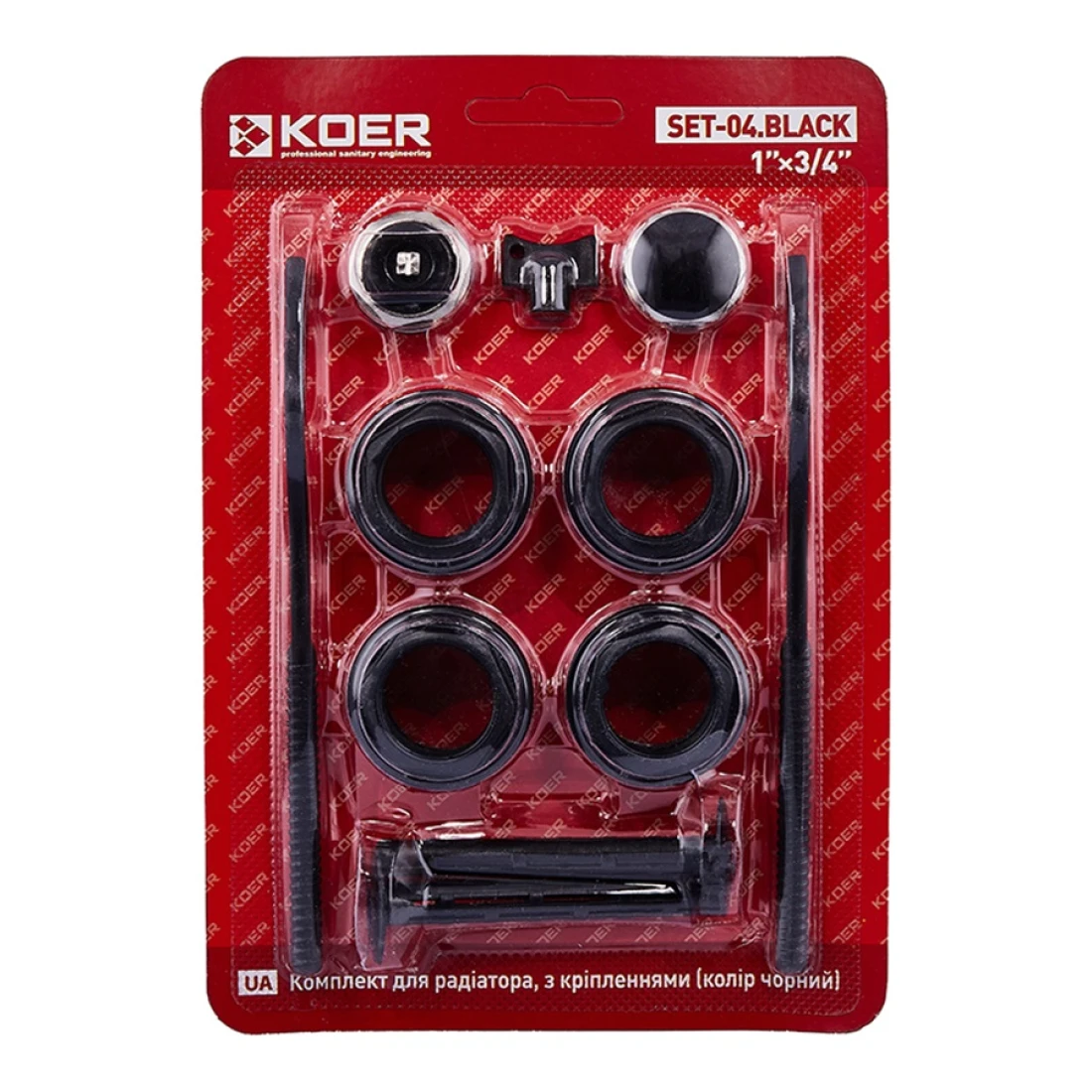 Особливості Комплект футорок для радіатора Koer SET-04.Black 3/4″ з кріпленнями (чорний) KR5188: