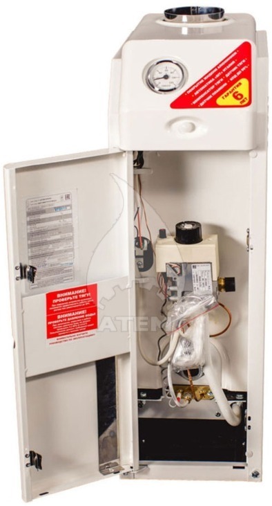 АТЕМ Житомир-3 КС-Г-012 СН (димохід вверх) – димохідний підлоговий опалювальний газовий котел, автоматика 630 Eurosit. Володіє дуже ефективними конструкторськими рішеннями, що дозволили значно знизити витрату газу і підвищити ефективність котла.Переваги: Відсутність втрат повітря з приміщення через котел. В котлі реальна температура димових газів на виході з теплообмінника і на вході в димохід однакова і становить оптимальні 100°С, так як відсутній підсос повітря через димохід. Як результат, відсутні зайві втрати тепла, а витрати газу значно менше. В котлі Житомир-3 передбачений компенсатор тяги, який автоматично закривається при зростанні тяги взимку, не даючи теплому повітрю, нагрітому котлом, витягуватися з приміщення в димохід. Котел ефективно працює в будь-яких умовах при будь-якій тязі: Мала тяга. При рівних площах теплообміну димові гази в котлі проходять в 3-4 рази довший шлях, віддаючи максимальну кількість тепла в систему опалення. Висока тяга. Рух газів переходить в турбулентний режим (режим перемішування), в результаті чого теплопередача значно зростає, компенсуючи високу тягу і змушуючи гарячі гази максимально ефективно передавати тепло в систему опалення. Надійний захист від корозії. Котел має антикорозійне покриття, технологія якого заснована на напиленні рідкого алюмінію на гарячу сталь, в процесі чого утворюється інтерсплав, який надійно захищає теплообмінник протягом усього терміну служби котла. Перевірена надійність. Котел в процесі виробництва проходить випробування на міцність під тиском 2-3 атм., проводиться 100% перевірка роботи всіх деталей котла, ретельно перевіряються спрацьовування датчиків безпеки в аварійних режимах. Технічні характеристики Найменування параметру КС-Г-012 СН Вид палива природний газ ГОСТ 5542-2014 Ефективність згорання палива (ККД), до % 94 Тиск газу, Па (мм. вод. ст.) ном/мін/макс 1274 (130) / 635 (65) / 1764 (180) Вихідний тиск газу, мм. вод. ст. 75 Теплоносій вода з жорсткістю не вище 0,7 мг – екв/л; pH = 7 Максимальна температура води на виході, не більше °С 90 Рекомендована температура теплоносія, °С 60-80 Тиск теплоносія, МПа (кг/см²) робочий/макс 0,15 (1,5) / 0,2 (2) Розрядження за котлом, Па (не менше/не більше) 4 / 25 Номінальна теплова потужність, кВт 12,5 Опалювальна площа, до м² 125 Об’єм води в котлі, л 16 Витрата води на гаряче водопостачання з різницею темп. 35°С, не менше кг/год (при темп.теплоносія в котлі 90°С) – Номінальна витрата газу, приведена до нормальних умов, м³/год 1,33 Середня витрата газу, приведена до нормальних умов, м³/год 0,46 Об’єм повітря для подачі в зону горіння, м³ 35 Умовний прохід сполучних патрубків до системи опалення, мм 40 до системи газопостачання, мм 15 до системи водопостачання, мм – Маса, не більше кг +/- 10% (нетто/брутто) 49 / 51.