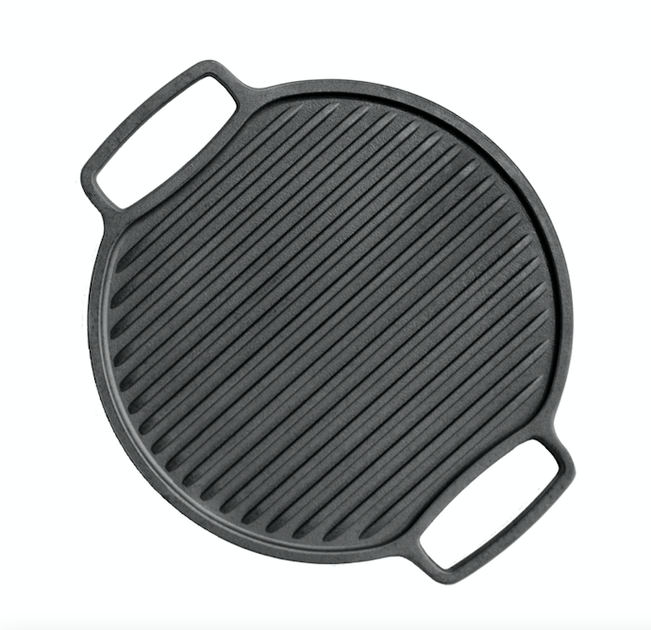 Плато Двостороннє Кругле Гриль BRIZOLL 320 мм (U32G) Універсальна чавунна поверхня для смаження та гриля. Двостороння конструкція дозволяє вибирати: гладка сторона ідеальна для млинців, яєчні, риби; рифлена сторона — для м’яса та стейків з характерними смужками гриля. Чавун забезпечує максимальну температуру та рівномірний розподіл тепла. Плато підходить для використання на плиті (включно з індукційною), а також на мангалі та відкритому вогні. Висока зносостійкість, зберігає тепло дуже довго.