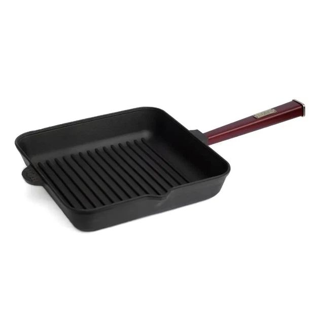 Характеристики: * Тип: Сковорода-гриль (квадратна) * Розмір: 260х260 мм * Висота стінки: 57,5 мм * Матеріал: Чавун * Серія: Optima-Bordo * Призначення: Гриль, смаження.